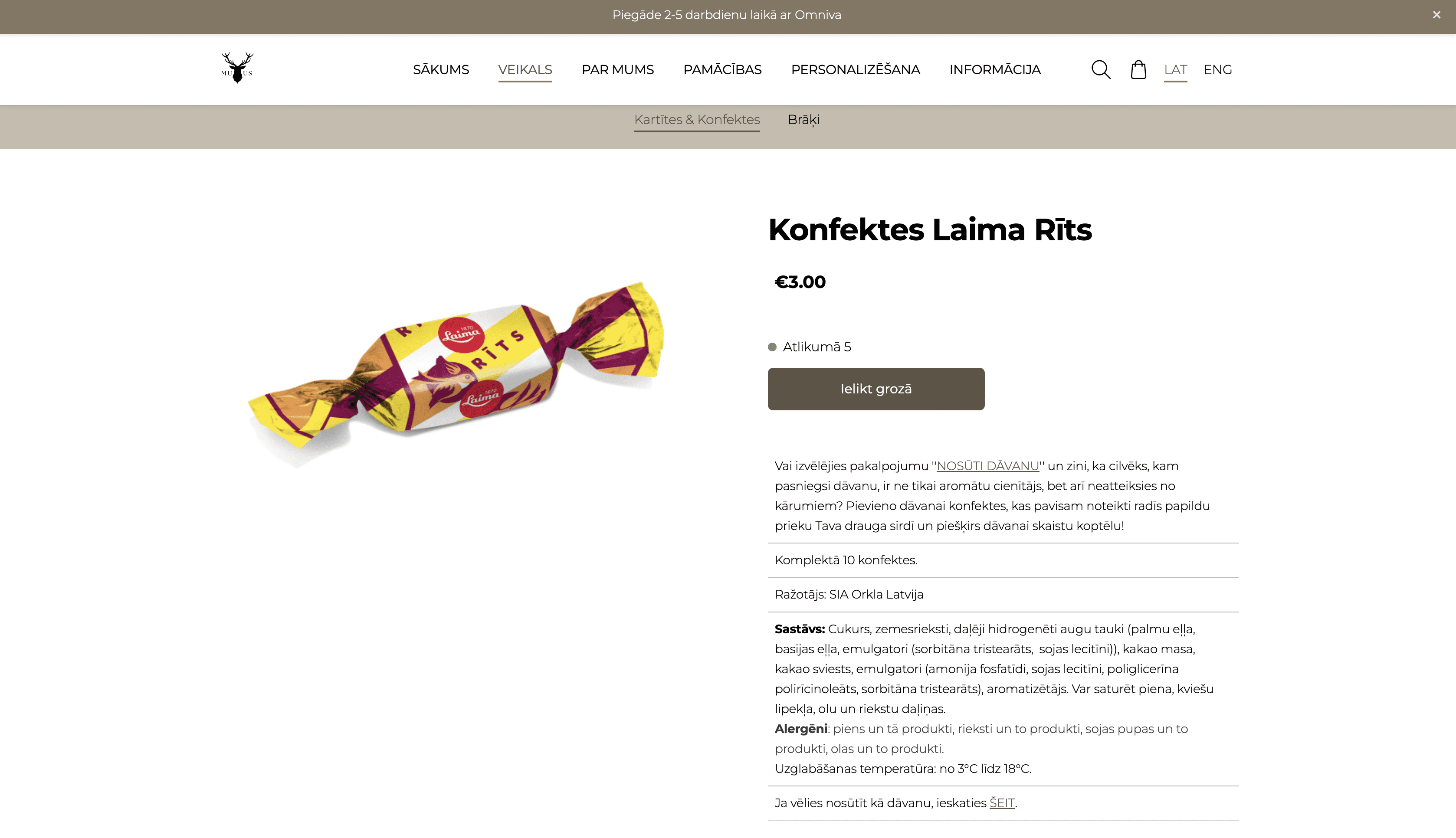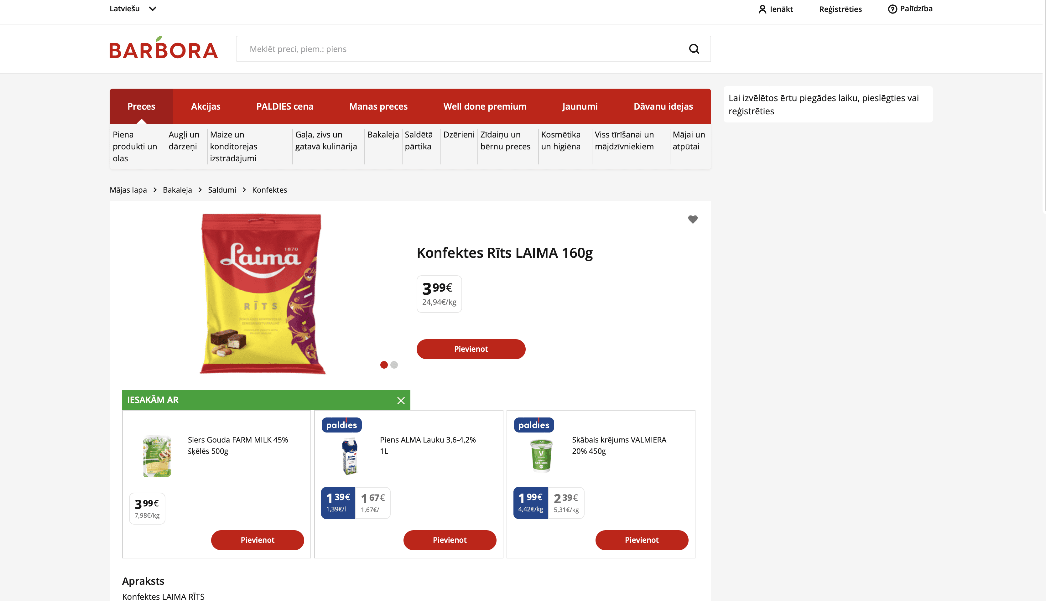 Lūk, cik “Laima” konfektes “Rīts” maksā dažos internetveikalos: