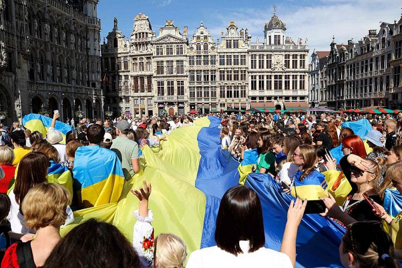 A 30-meter Ukrainian flag was unfurled near the European Parliament for the National Flag Day. pic.twitter.com/1ONJyBGJXi
