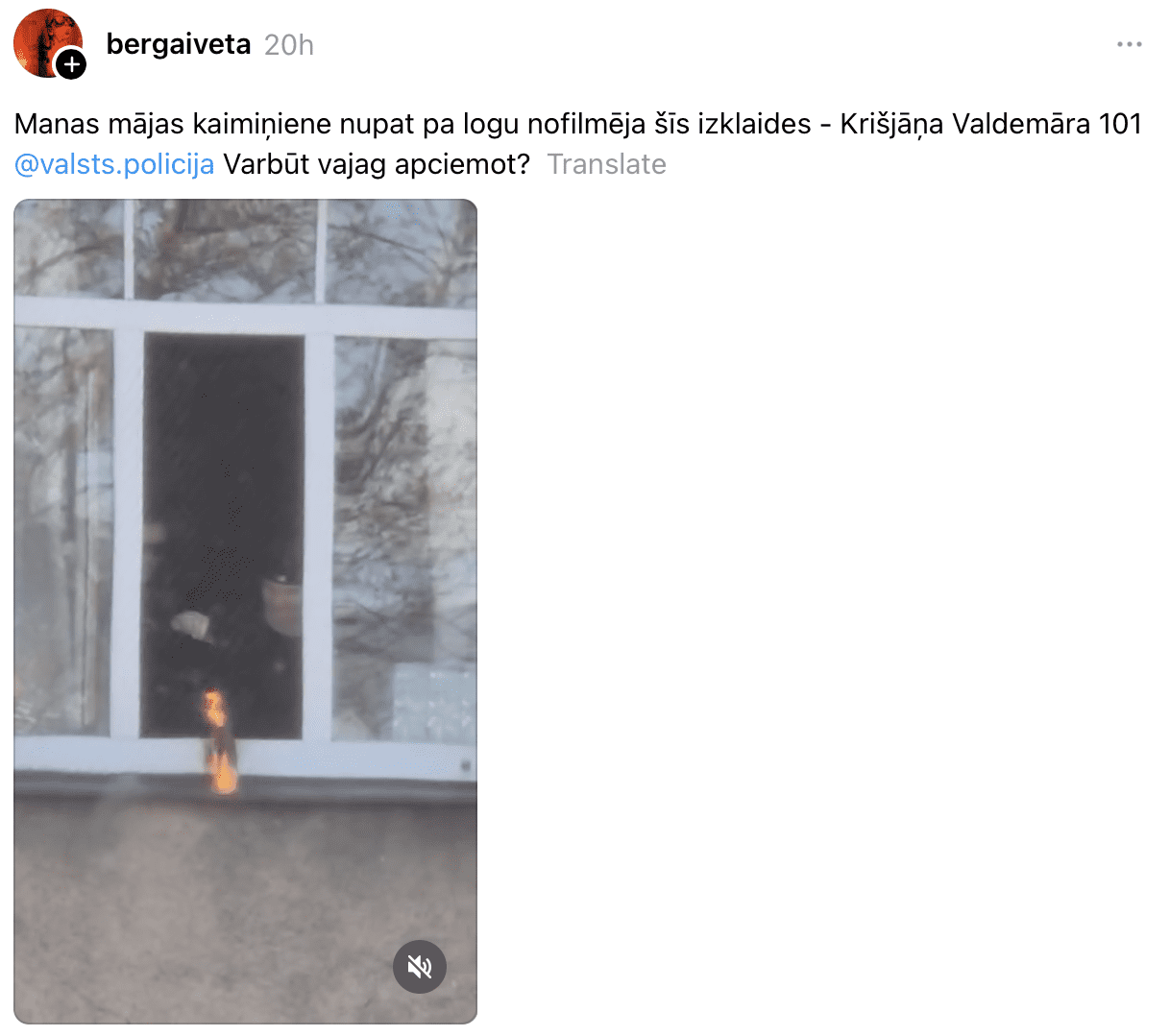“Manas mājas kaimiņiene nupat pa logu nofilmēja šīs izklaides – Krišjāņa Valdemāra 101. Valsts policija, varbūt vajag apciemot?” vietnē “Threads” raksta Iveta.