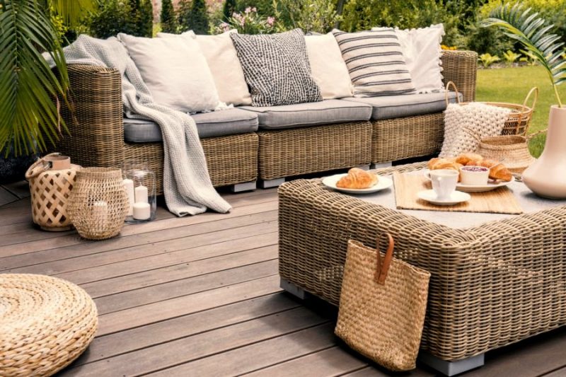 Vislabāk brīvā dabā jūtas mēbeles no polirotanga (mākslīgais pinums) – tās ir ilgmūžīgas, vieglas, nav īpaši jākopj un arī iegādājamas par salīdzinoši demokrātisku cenu.