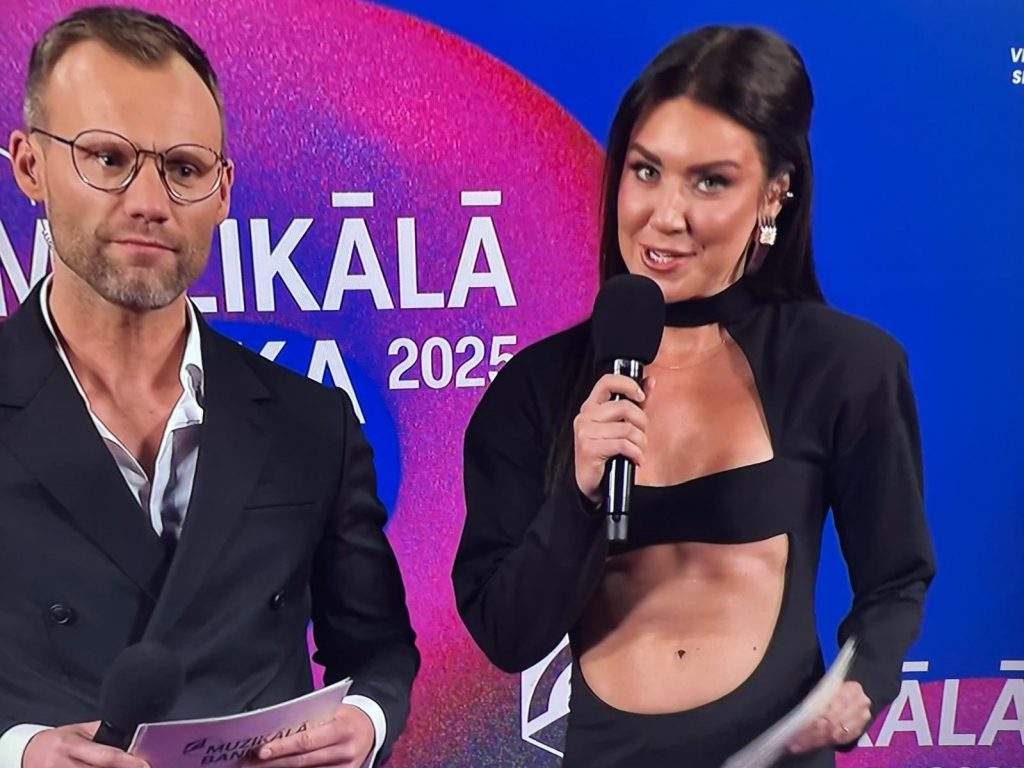 “Vai šī kleita nav uzvilkta ar mugurpusi uz priekšu?” Sabiedrība pārsteigta par “Muzikālās bankas” vadītājas tērpu