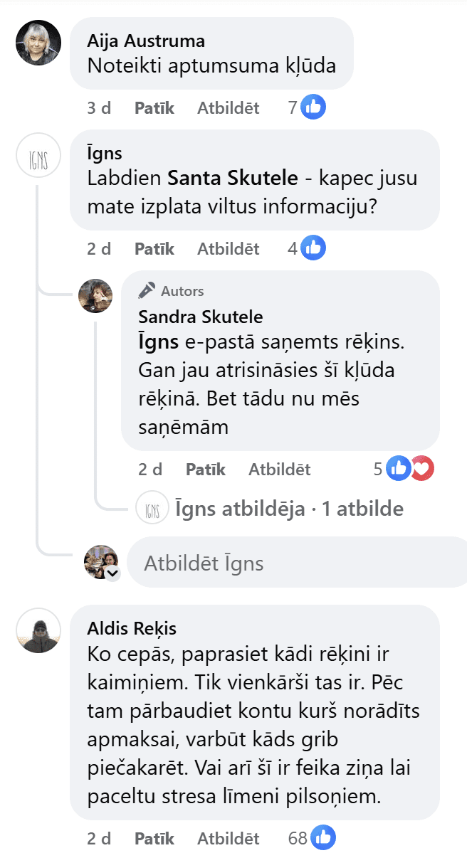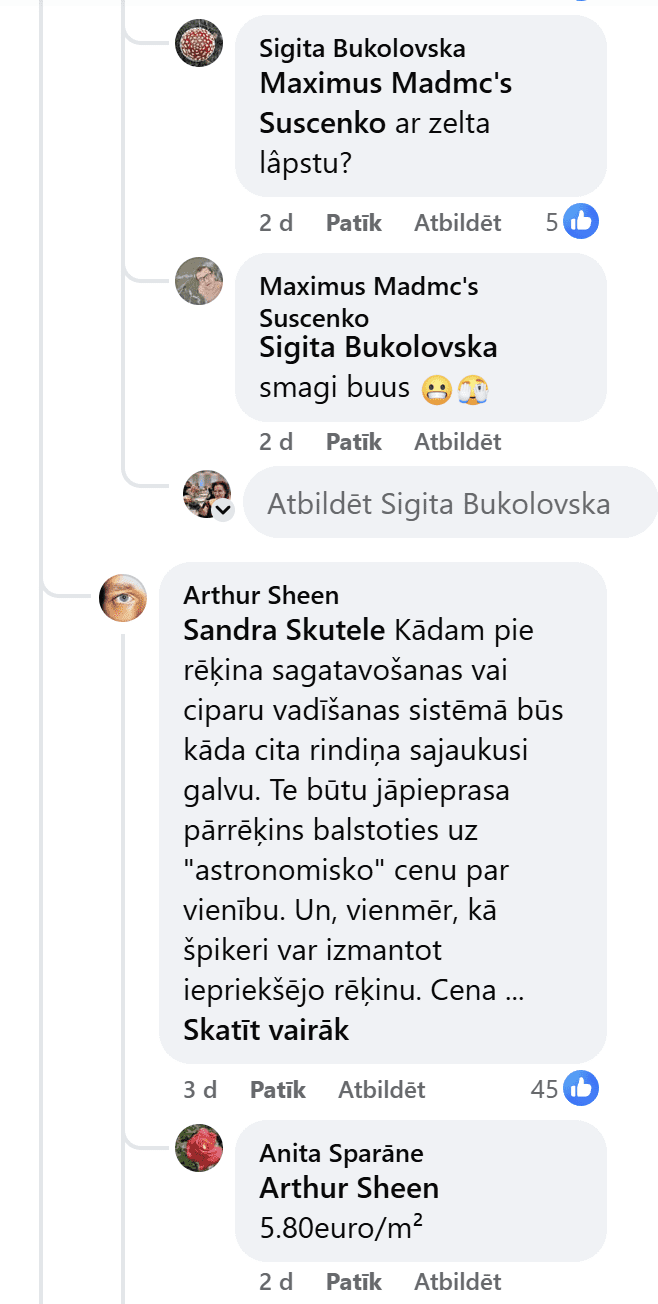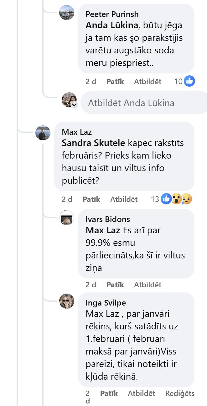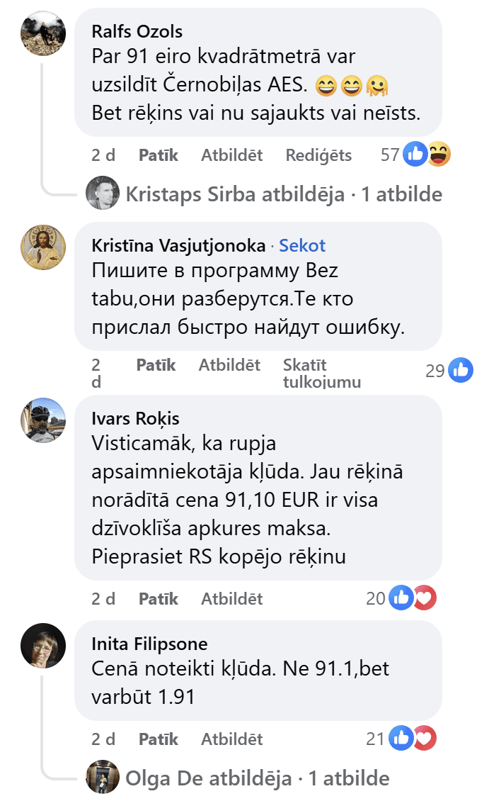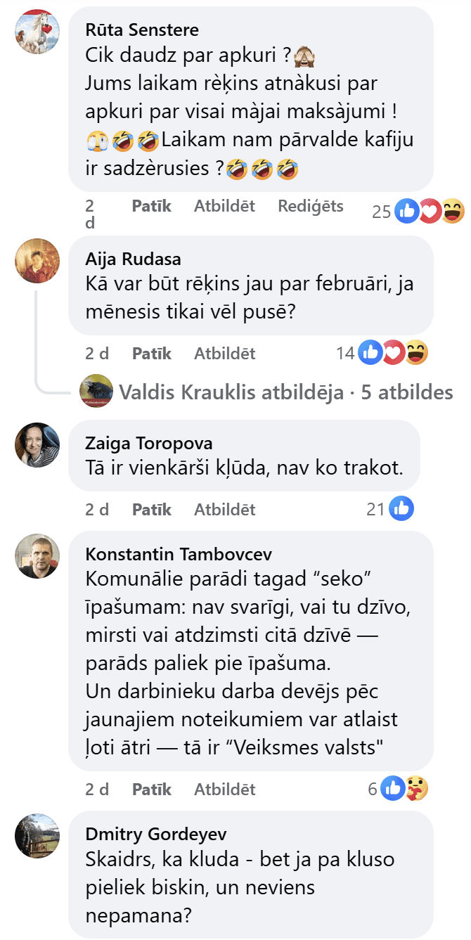 Ieraksta autore gan pati atbild, ka “Rēķini tiek izrakstīti saskaņā ar Rīgas Siltuma atsūtīto rēķinu. Salīdzinoši patēriņš mājai kopumā ir gandrīz uz pusi lielāks nekā vienu mēnesi iepriekš.” Un tāda bija atbilde no namsaimnieka. Super!”