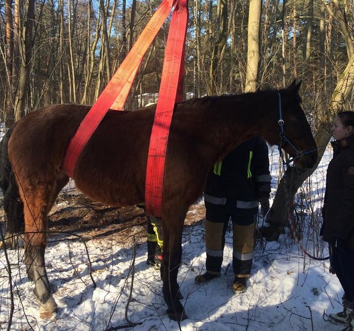 Savainotajam dzīvniekam glābējiem ar īpašu aprīkojumu izdevās palīdzēt un viņš savām kājām patstāvīgi spēja aiziet līdz netālu esošajam stallim.