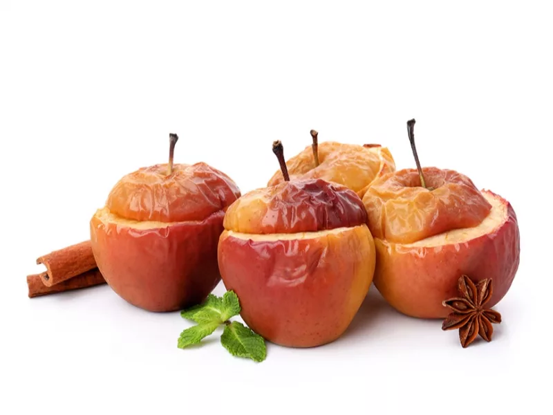Āboliem izdobj serdi un ieliek sviesta piciņu. Marcipānu sajauc ar olu, lai veidojas mīksta masa, un iepilda ābolos. Pa virsu uzkaisa mandeles. Cep cepeškrāsnī 180 grādos 20–30 minūtes. Pasniedz ar saldējumu.