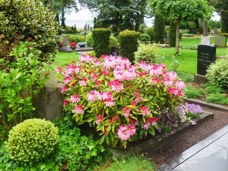 Arī kapsētu stādījumiem izvēlas neliela auguma rododendrus, lai tie nākotnē neaizņemtu pārāk daudz vietas. Lielie, spēcīgi augošie rododendri pēc dažiem gadiem pārklās visu kapvietu.