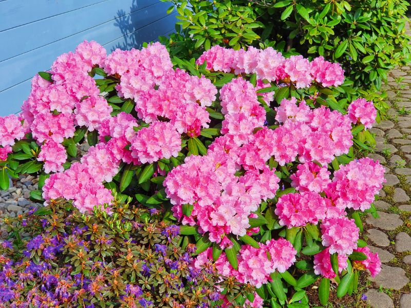 Ja rododendrus stāda ceļu un taku tuvumā, jāielāgo, ka minimālajam attālumam no celiņiem jābūt vismaz 2 metri, citādi pēc dažiem gadiem rododendri augs tiem pāri.