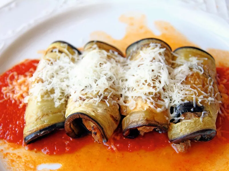 Ātro pusdienu recepte – baklažānu rullīši ar šķiņķi 0