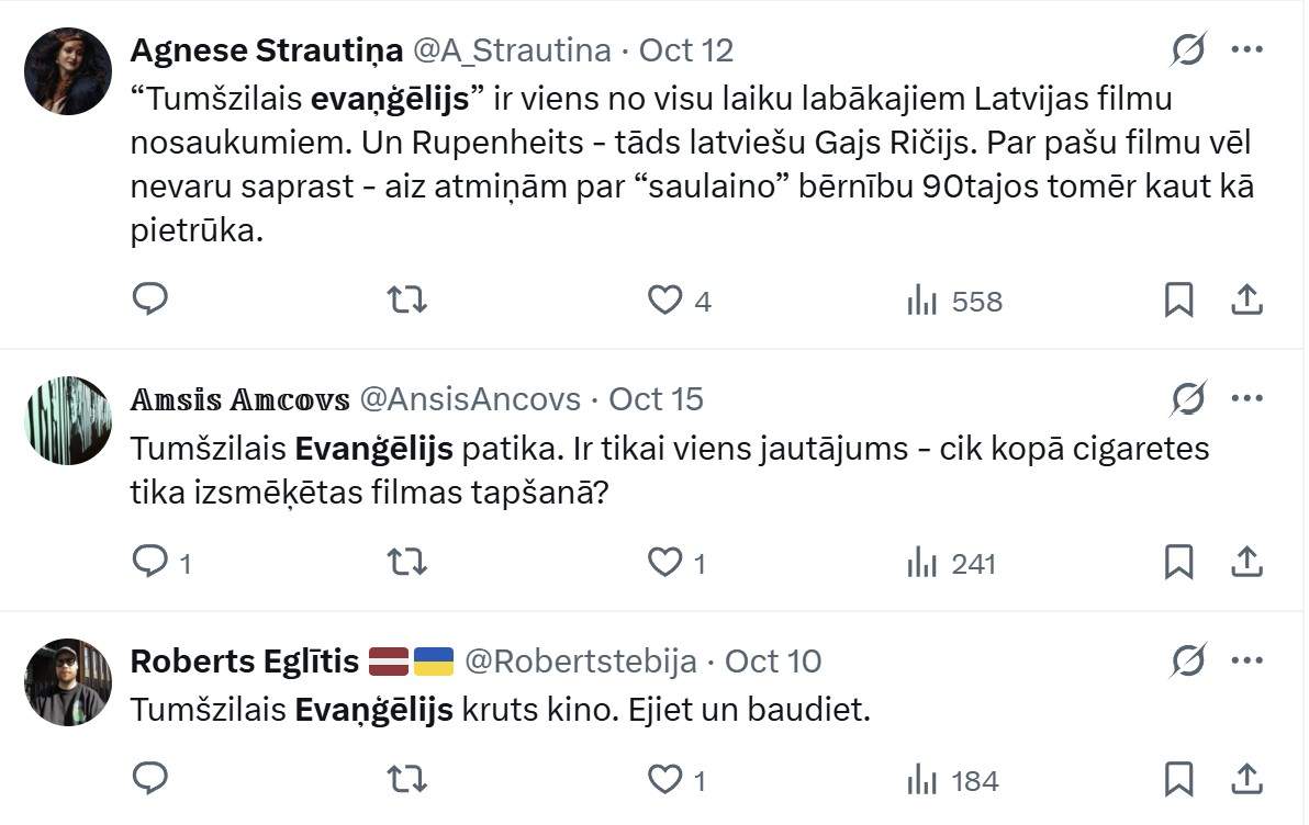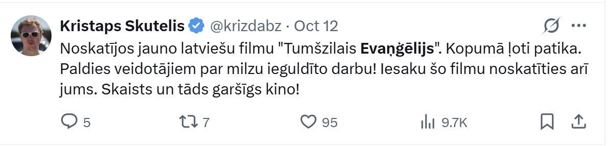 Atsauksmes par latviešu filmu “Tumšzilais evaņģēlijs” pārpludina internetu: “Neprofesionāli aktieri”, “Nav nekāds krimiķis” 0