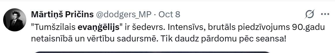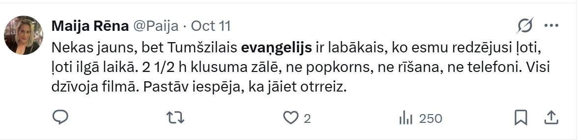 Jau no oktobra sākuma Latvijas kinoteātros skatāma filma “Tumšzilais evaņģēlijs.”