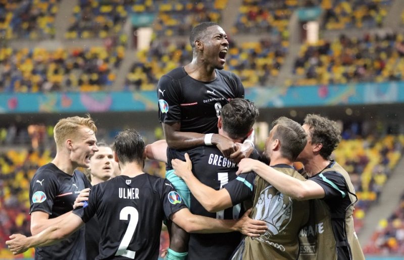 Austrijas futbola izlase svētdien Bukarestē Eiropas čempionāta finālturnīra pirmajā spēlē ar rezultātu 3:1 (1:1) pārspēja turnīra debitanti Ziemeļmaķedoniju.