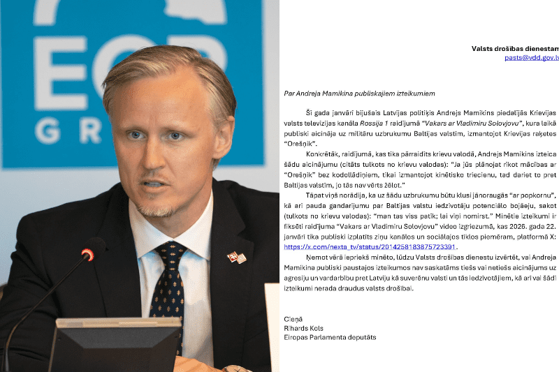 Eiropas Padomes deputāts Rihards Kols (NA) nācis klajā ar paziņojumu, ka ir iesniedzis Valsts drošības dienestam iesniegumu par Andreja Mamikina publiskajiem izteikumiem Krievijas televīzijā.