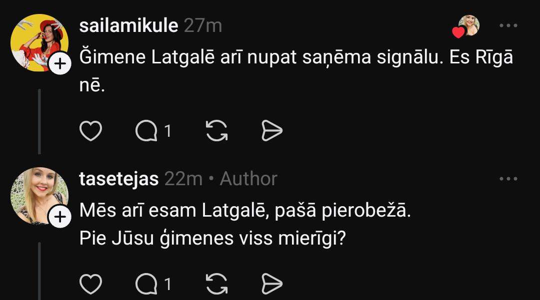 Vairāki Balvu novada iedzīvotāji aģentūrai LETA apliecināja, ka savos mobilajos tālruņos ir saņēmuši šūnu apraides ziņojumus gan par apdraudējumu, gan par tā beigšanos.