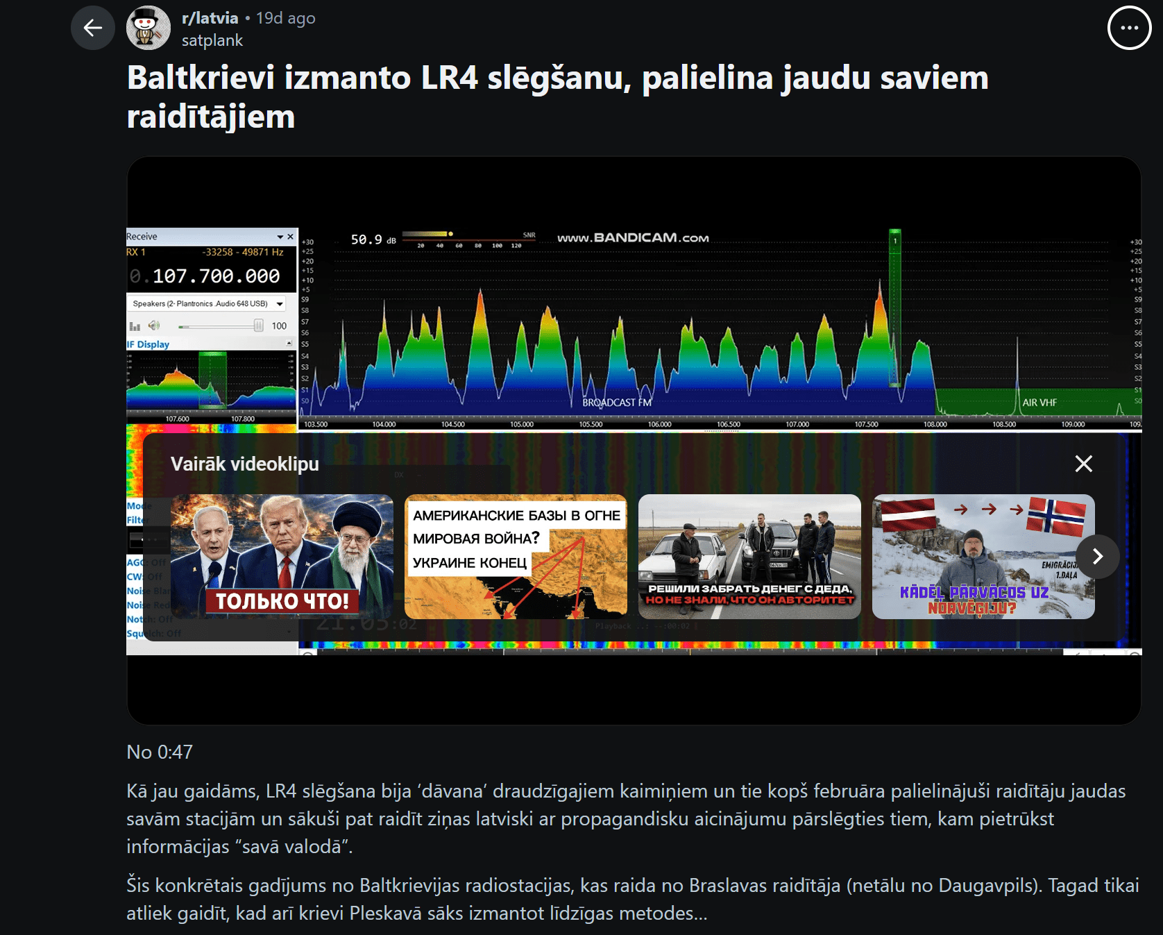 Šis konkrētais gadījums no Baltkrievijas radiostacijas, kas raida no Braslavas raidītāja (netālu no Daugavpils). Tagad tikai atliek gaidīt, kad arī krievi Pleskavā sāks izmantot līdzīgas metodes…” teikts “Reddit” publikācijā.