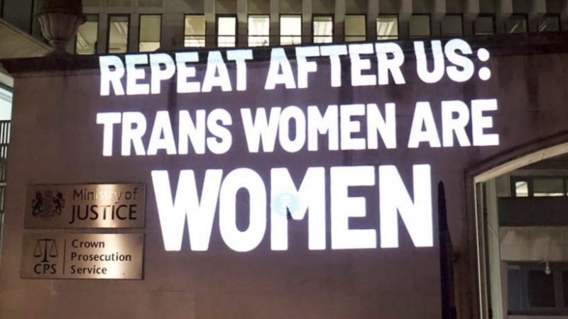 Viņa nepārprotami noraidīja transpersonu kopienu “X”, kad viņa dalījās ar foto, kas tika projicēts uz Lielbritānijas Tieslietu ministrijas birojiem: “Atkārtojiet pēc mums: Transsievietes ir sievietes”. “Nē,” Roulinga strupi norādīja, pirms turpināja izklāstīt savu viedokli.