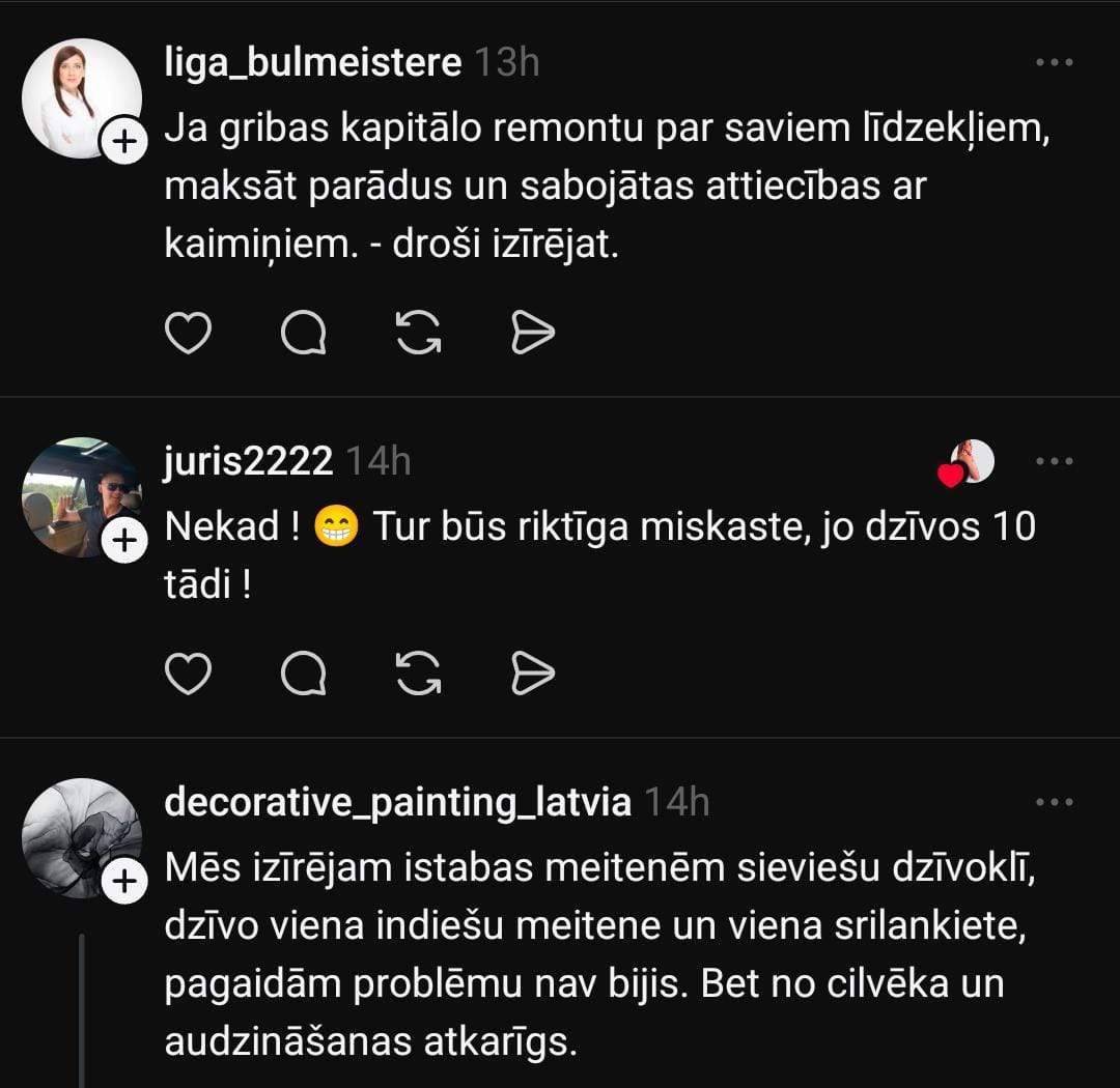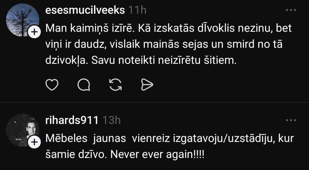 Vēl kāds lietotājs raksta: “Kaimiņos dzīvo. Nezinu, cik tur sākumā bija sarunāti, bet katru reizi redzu jaunas sejas. Dažreiz šķiet, ka viņi tur nakšņo pa maiņām.”