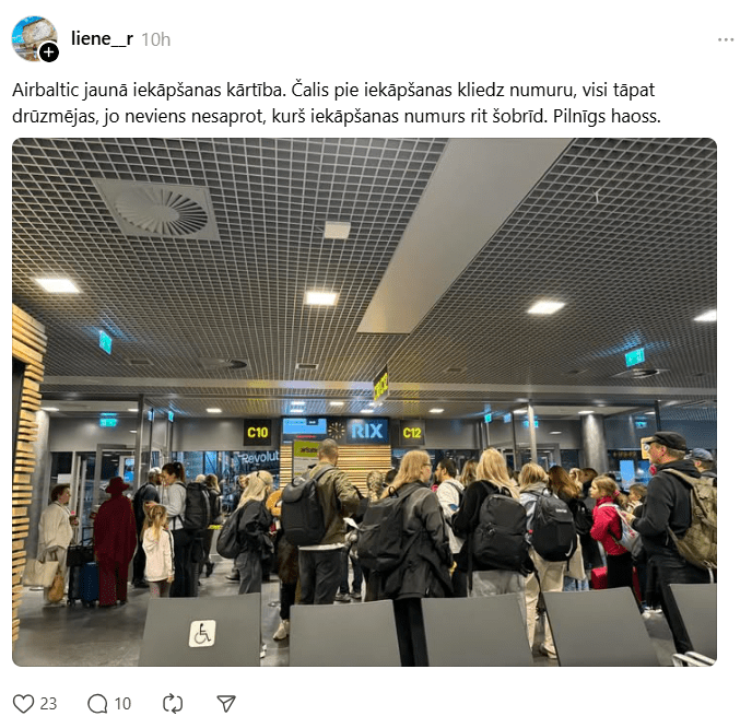 “Čalis kliedz numuriņus, visi drūzmējas, neko nesaprot, pilnīgs haoss!” Ceļotāja nokaitināta par “airBaltic” jauno kārtību 17
