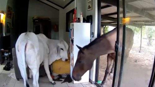 VIDEO. Šiem suņiem nevar uzticēt mājas sargāšanu! Vīrietis šokēts, redzot, kas notiek, kad saimnieku nav mājās