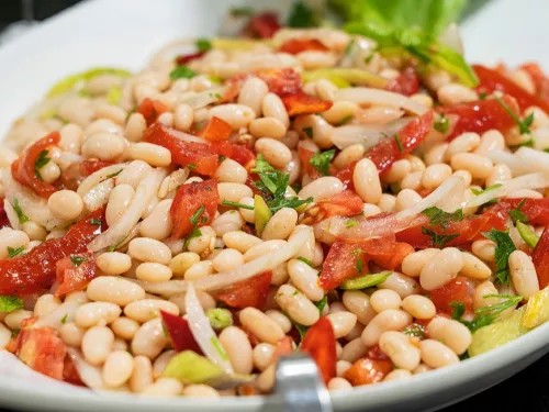 Visi gardumi vienā traukā: paprikas, pupiņu un spinātu salāti