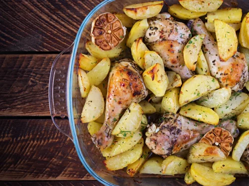Ātrām vakariņām: citronā marinēti vistas stilbiņi ar kartupeļiem