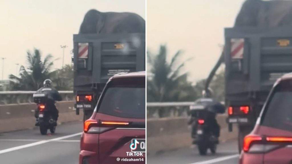 VIDEO. “Tālāk netiksi!” Zilonis ar snuķi paķircina garāmbraucošo motociklistu