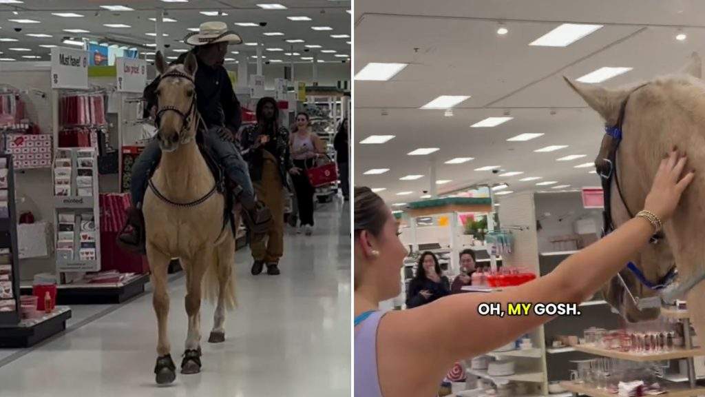VIDEO. Iespējams tikai Amerikā! Kovbojs dodas uz veikalu, sēžot zirga mugurā. Aiz “pircējiem” paliek pamatīga šmuce