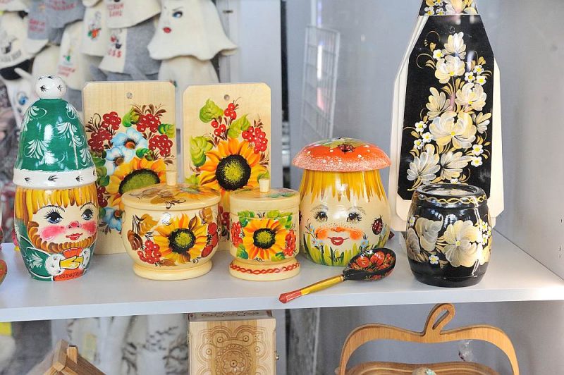 Nu nav Agnesei taisnība! Pašā paviljona viducī rosās vīrs, kura stendā nopērkamas gan matrjoškas, gan filca cepures ar uzrakstu “Хозяин бани”, tātad “Pirts saimnieks”.
