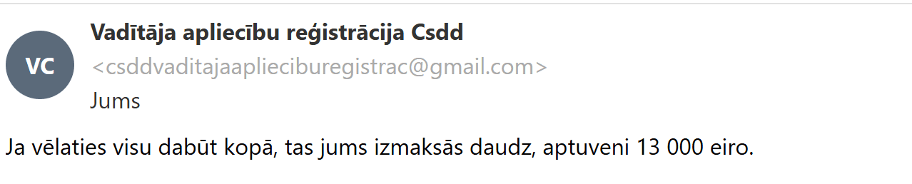 Tāpat tika sniegta informācija, ka maksājums jāveic uz konkrētas personas vārda – Rufina Maria, vai arī uz kaut kādu mistisku Luksemburgā bāzētu uzņēmumu.