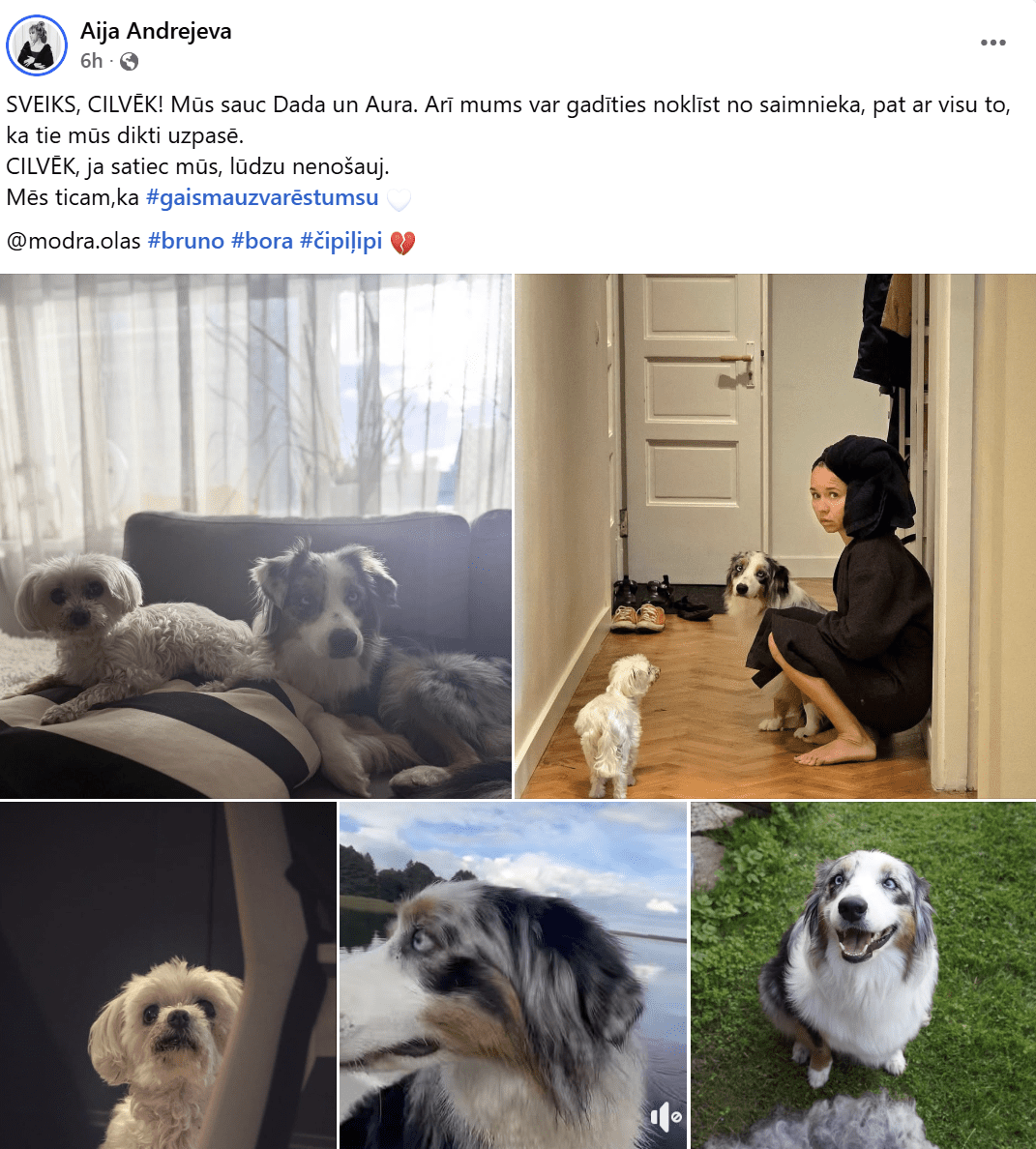 Trešdien, 22. oktobrī, sociālajos tīklos norisinājās īpaša akcija “#gaismauzvarēstumsu”. Tās laikā daudzi Latvijas iedzīvotāji – arī sabiedrībā zināmi – publicēja bildes ar saviem četrkājainajiem mīluļiem, lai paustu savu līdzjūtību un nostāju.