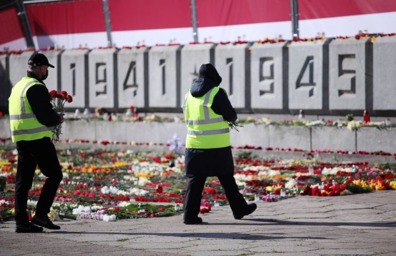 Šogad ļaudis pie pieminekļa ierodas daudz mazākā skaitā nekā citus gadus un arī mazāk pompozi, ņemot vērā noteikto aizliegumu lietot padomju režīmu slavinošu simboliku. Atnākušajiem līdz piemineklim nav iespējams nokļūt, jo tā pakājē novietoti galdi, uz kuriem var atstāt ziedus, kurus savukārt tuvāk pieminekļa neiežogotajai daļai aiznes speciāli šim nolūkam nolīgti cilvēki.