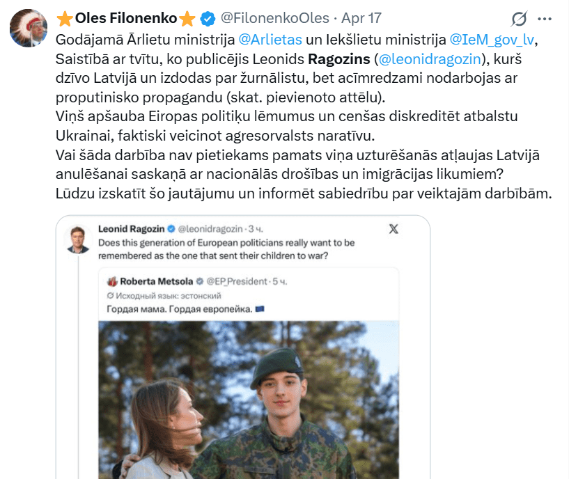 “Darīsim visu, lai nekļūtu par Krieviju!” Ragozina ieraksts par politiķiem, kuri sūta savus bērnus karā, izraisa skarbu pretreakciju 5