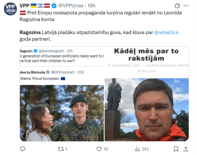 “Ragozins nav muļķis. Viņš pilda savu darbu Eiropā – graut atbalstu Ukrainai, graut Eiropas vēlmi sevi aizsargāt. Viņš ir krievu ietekmes aģents Eiropā. Pēdējās šaubas par to pazuda 2022.gadā, kad viņš faktiski uzsāka jebkuras Ukrainas pretošanās kritiku un krievijas atmazgāšanu,” spriež “X” lietotājs Māris.