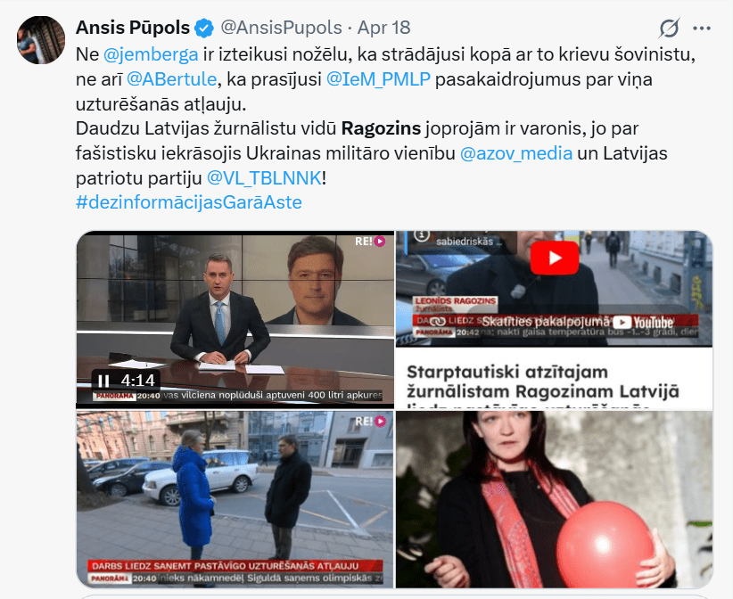 Tā kā žurnālists L.Ragozins ir rakstījis arī Baltijas pētnieciskās žurnālistikas centram “Re:Baltica”, ieraksts ātri vien nonāca arī latviešu redzeslokā un dusmu epicentrā.