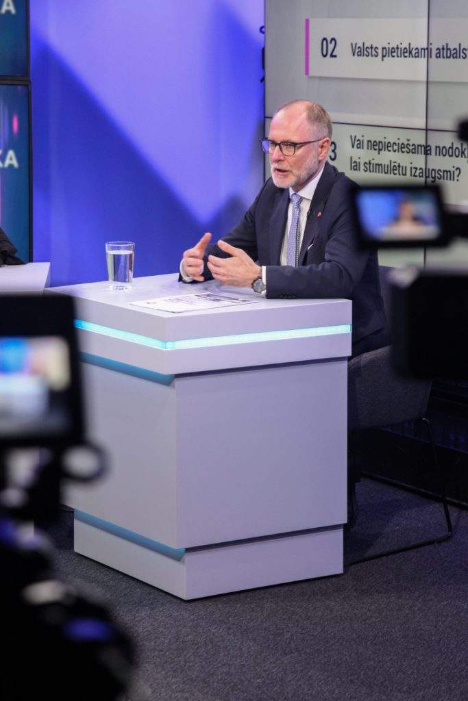 Valstī prioritāte šobrīd ir drošība. Aizsardzības jomai tiek piešķirti vislielākie līdzekļi. Vai to saņēmēji tiecas finansējumu izmantot tā, lai ieguvēja būtu Latvijas ekonomika un lai lielāki līdzekļi arī ilgtermiņā ienāktu valsts budžetā, tā ļaujot aizsardzību finansēt no pašu pelnītā nevis aizdevumiem? Andris Sprūds, aizsardzības ministrs (Progresīvie): “Jā, protams, drošība un aizsardzība ir prioritāte. Un mums ir svarīgi, ka mēs ieguldām – nevis tērējam, bet ieguldām mūsu aizsardzībā. Jo tas ir gan par mūsu cilvēku drošību – mūsu aizsardzības spēju -, gan vienlaikus par attīstību. Mums ir jāskatās, kā mēs, ieguldot aizsardzībā, vienlaikus ieguldām mūsu piegāžu drošībā, gan mūsu ekonomikā, gan mūsu inovācijās, attīstībā un pētniecībā. Kopā ar Ekonomikas ministriju mēs izstrādājām aizsardzības industrijas un inovāciju stratēģiju, tur ļoti skaidri mērķi noteikti: jau 2028. gadā vajadzētu sasniegt to, ka 3% no mūsu tautsaimniecības ir tieši vai netieši saistīti ar mūsu aizsardzības industriju. 2036. gadā tiem vajadzētu būt 5%. No militārām spējām – ja šobrīd vietējās industrijas komponenti ir aptuveni 10%, tad tuvākajos gados tiem jābūt 20% un jau 2036. gadā vismaz 1/3 no visām piegādēm lielajām spējām būtu jānodrošina mūsu pašu industrijai. Piemēram, droni jau tagad nāk lielākoties no mūsu pašu industrijas. Mēs arī esam uzstādījuši par mērķi, ka 1,5% no visa aizsardzības jomas budžeta ir jāvelta inovācijām. Ja vēl pagājušajā gadā tie bija vēl apmēram 6-7 miljoni inovācijām, tad, ja mums ir 2 miljardu budžets, tas nozīmē, ka tuvākajos gados tie būs vismaz 30 miljoni eiro, kas aizies tikai inovācijām, pētniecībai, attīstībai. Tālākais uzstādījums – 2036. gadā sasniegt 3% no aizsardzības budžeta, kas aiziet inovācijām, pētniecībai un attīstībai.”