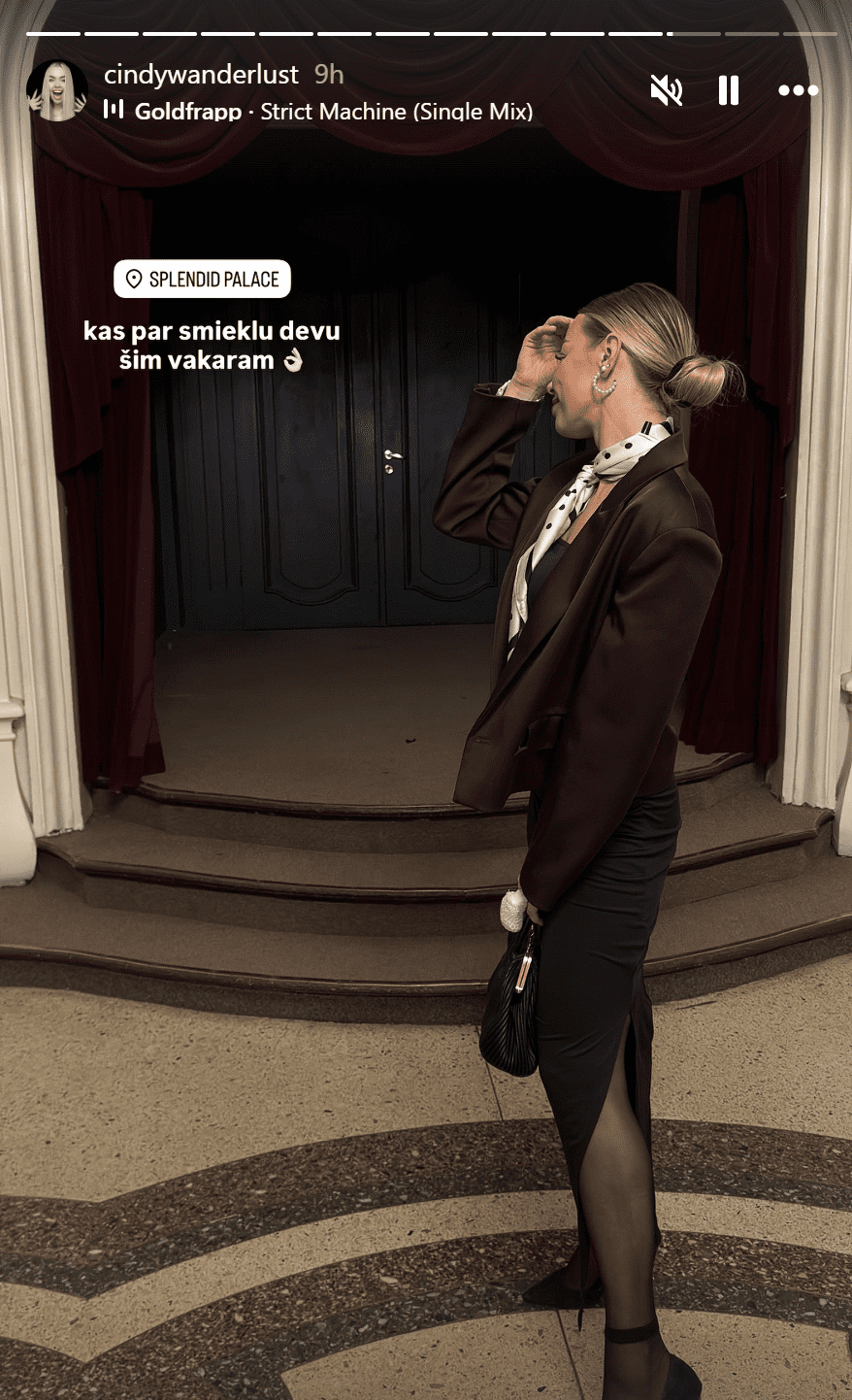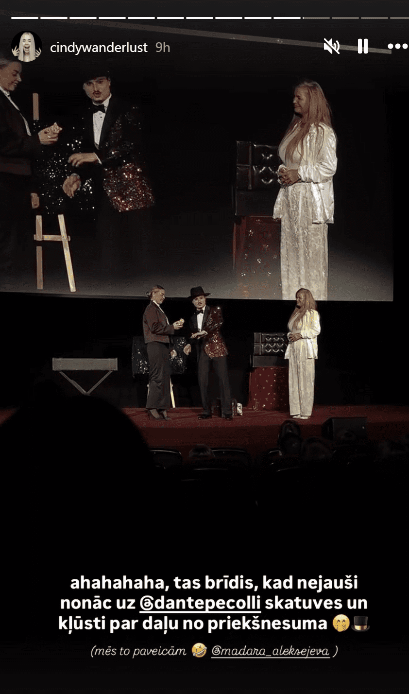 Sindija pati arī ir dalījusies ar īsajiem stāstiņiem no publiskā pasākuma. Tur gan izskatās, ka viņa lieliski pavadījusi laiku un pat tikusi šova laikā uzaicināta uz skatuves būt daļai no pasākuma.