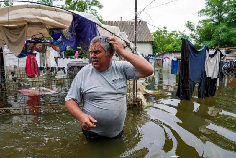 Ukrainians rescue a cat from drowning in Kherson.