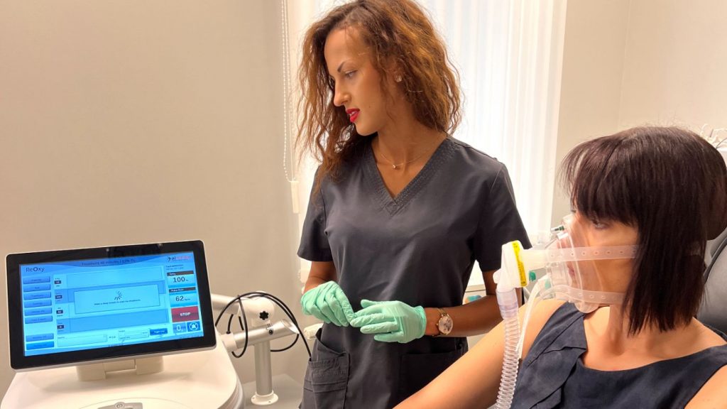 “Veselības centrs 4” preventīvās medicīnas klīnikā “Anti-Aging Institute” šī terapija tiek veikta ar jaunākās paaudzes iekārtu ReOxy (“Ai Mediq”, Luksemburga). Pacientam šī procedūra nozīmē mierīgu pielāgota gaisa elpošanu. Savukārt procedūras stimulētie procesi, kas labvēlīgi ietekmē visu organismu, nebūt nav vienkārši – to iedarbība sākas šūnu uzbūves līmenī.