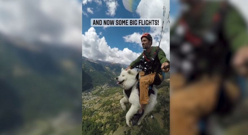 VIDEO. Elpu aizraujošs skats! Suns Ouka kopā ar saimnieku paraplānā laižas pāri kalniem 4