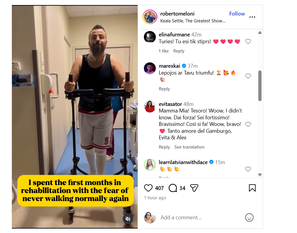 “Es baidījos, ka nekad vairs normāli nestaigāšu,” Roberto Meloni satriec savus fanus ar video materiālu 0