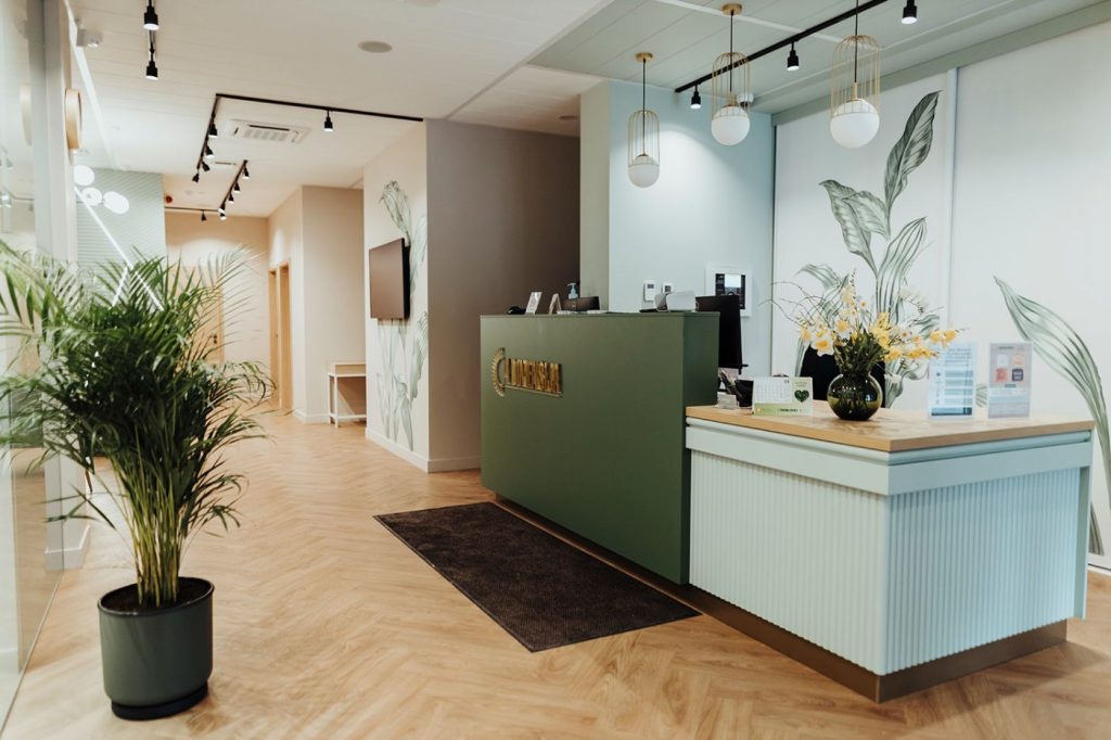 “4. Dimensija” interjeru trijos stāvos izsapņoja un ieveidoja dizainere Zane Skalberga un klīnikas vadītāja Zane Rēvalde. “Interjera pamatā izmantoti dabīgi, harmoniski toņi, kas rada nepieciešamo noskaņu un vidi padara intīmāku, lai, klientam šeit ierodoties, nebūtu izjūta, ka apmeklējis medicīnas iestādi,” stāsta dizainere.