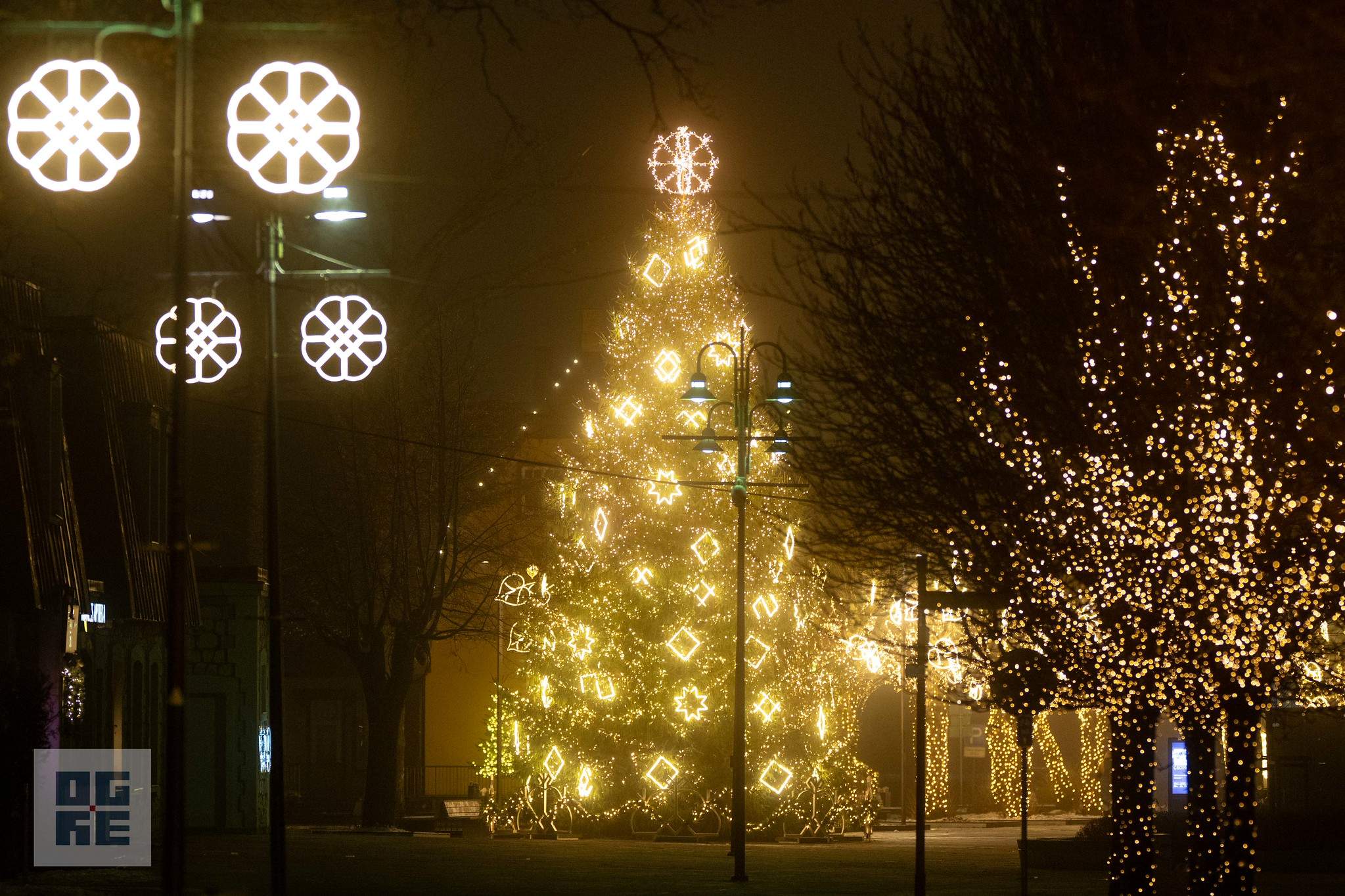 Nr. 9. Ogres pilsētas egle. Ogrē egle ir cēla ne tikai pēc skata, bet arī garā – tā dekorēta ar latvju zīmju rotājumiem. Šādi netipiski rotājumi ir gaumes lieta – kādam tie iet vairāk pie sirds, citam mazāk. Kopumā egle ir spoža, un rotājumi nav žēloti.