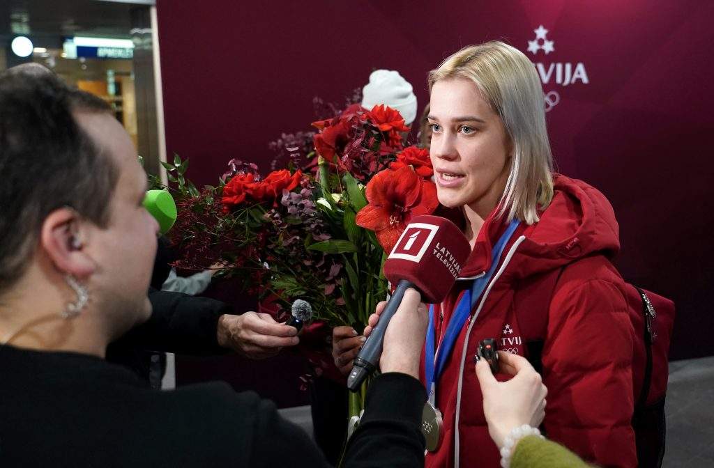 Milānas un Kortīnas ziemas olimpisko spēļu vicečempione kamaniņu sportā Elīna Ieva Bota un citi renes sporta veidu Latvijas delegācijas pārstāvji šodien atgriezās Latvijā.