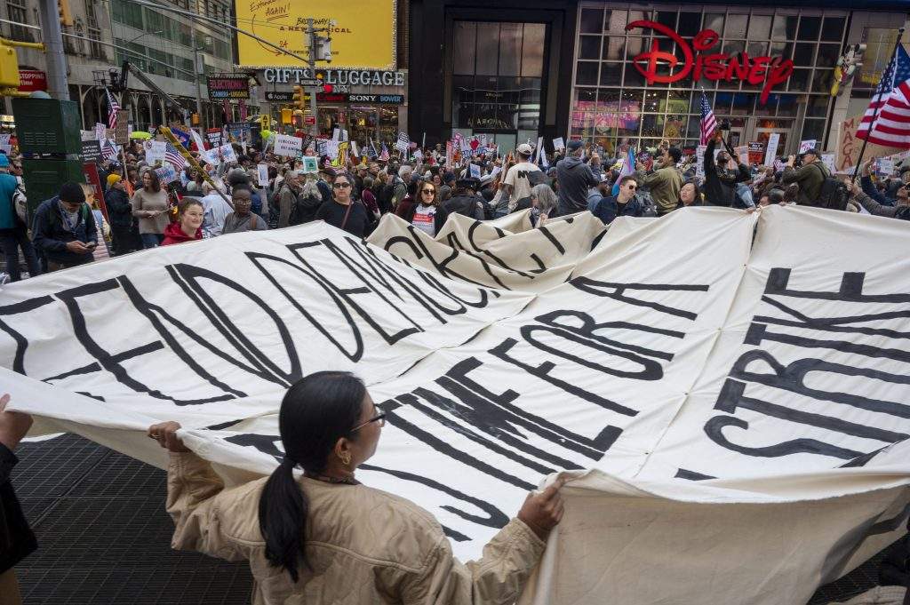 Ņujorkas policija ziņoja, ka pilsētā protestēja aptuveni 100 000 cilvēku. Demonstrācijas noritēja mierīgi.