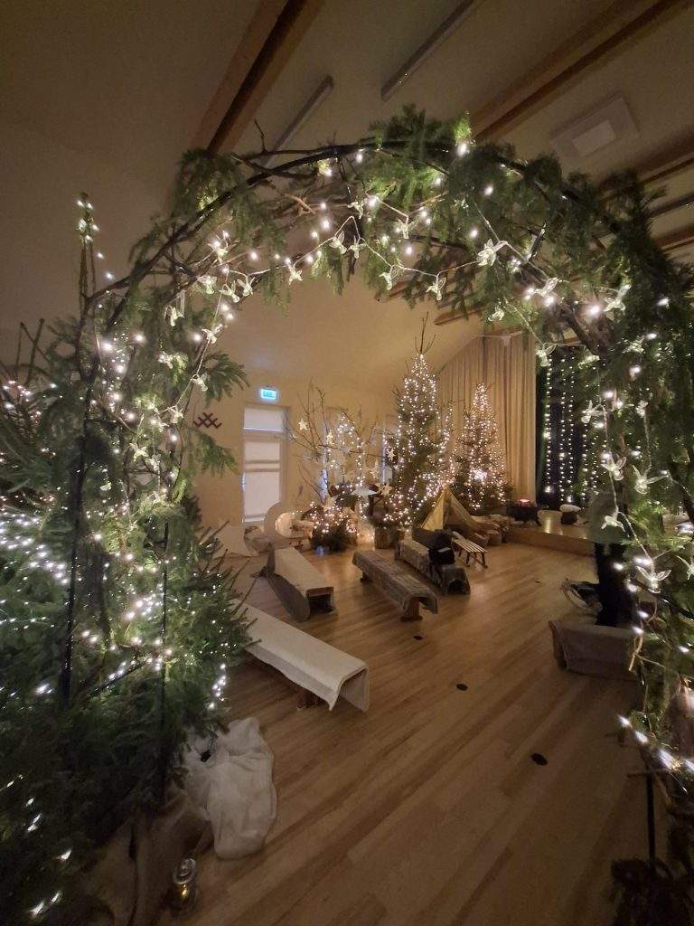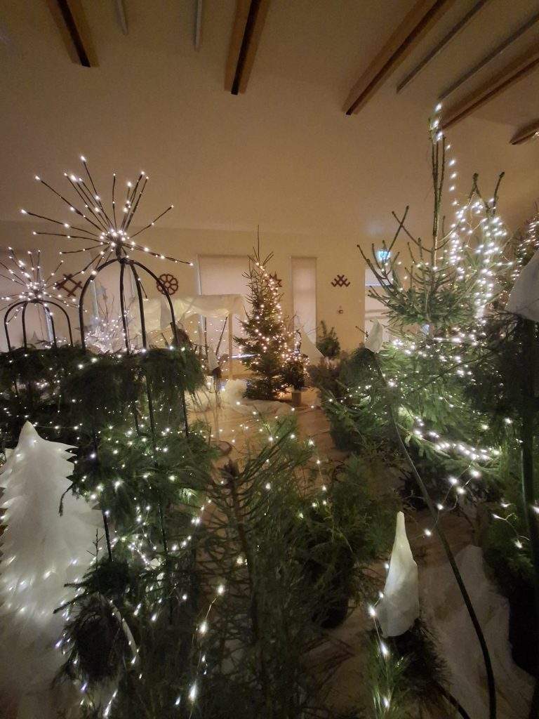 Iestādes multihalle pārvērtusies par Pasaku mežu, kurā ikviens var sajust svētku burvību. Neskaitāmas lampiņu virtenes un gaismas objekti izgaismo eglītes un krūmus, starp kuriem klusi un noslēpumaini paslēpušies meža zvēri.