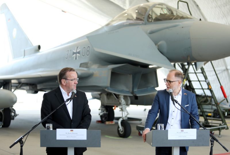 🇱🇻 🇩🇪 Today @AndrisSpruds met with @BMVg_Bundeswehr Boris Pistorius at Lielvārde Air Base, in which NATO Air Policing is carried out from since March.