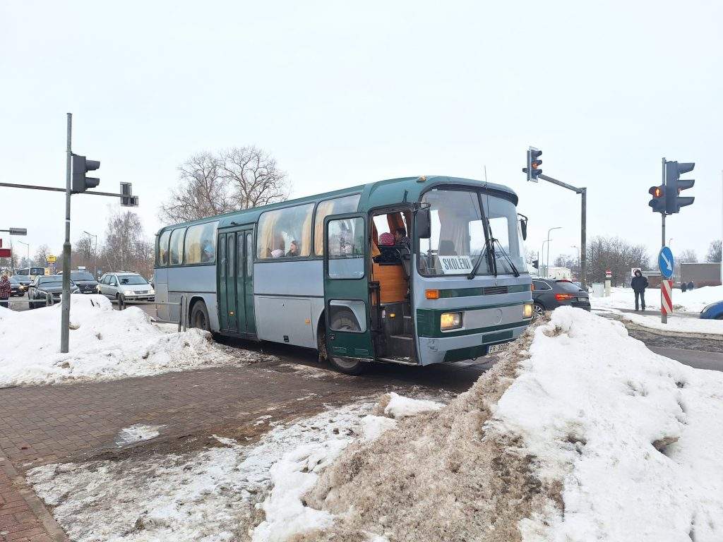 FOTO. Bremzēm bija kritiska asimetrija: avarējušais autobuss, ar kuru Jelgavā veda bērnus uz skolu, nemaz nedrīkstēja atrasties uz ceļa 1