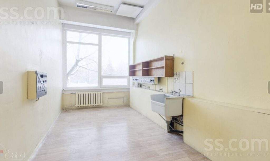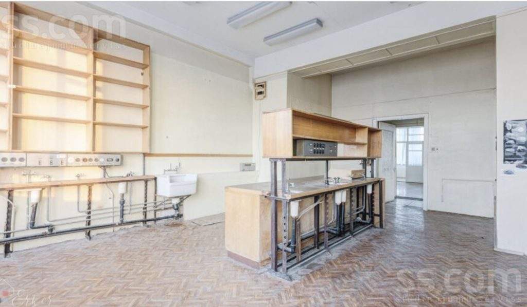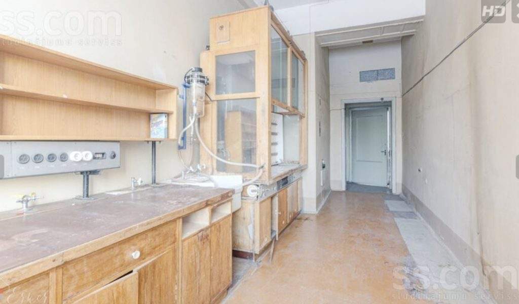 2) laboratorijas korpuss ar kopējo platību 5662, 3 m², fiziskais stāvoklis apmierinošs, iespējams sadalīt dzīvojamās platībās, izvilkt jaunus stāvvadus.