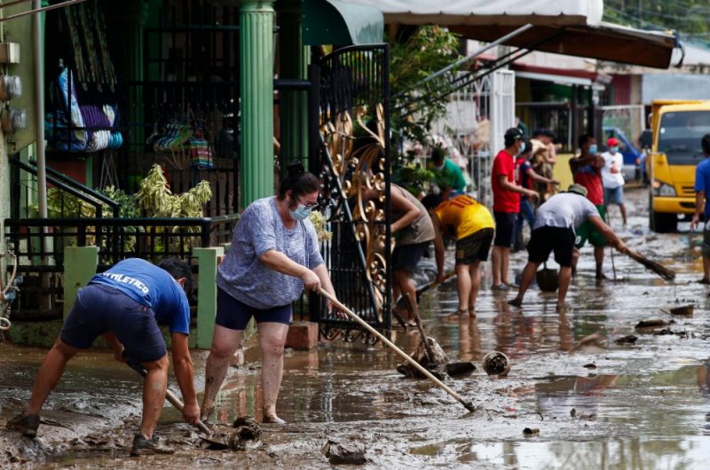 “Goni” traucoties pāri Lusonas dienviddaļai, vējā un lietavās sagāzti elektrolīniju stabi, izraisījušies plūdi un zemes nogruvumi.