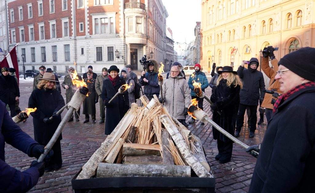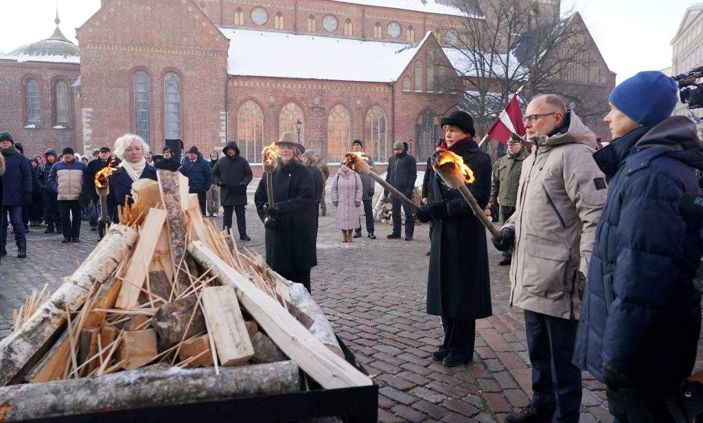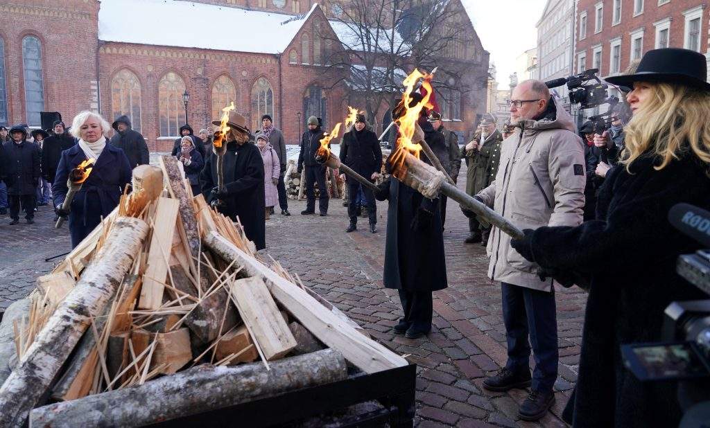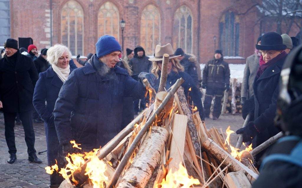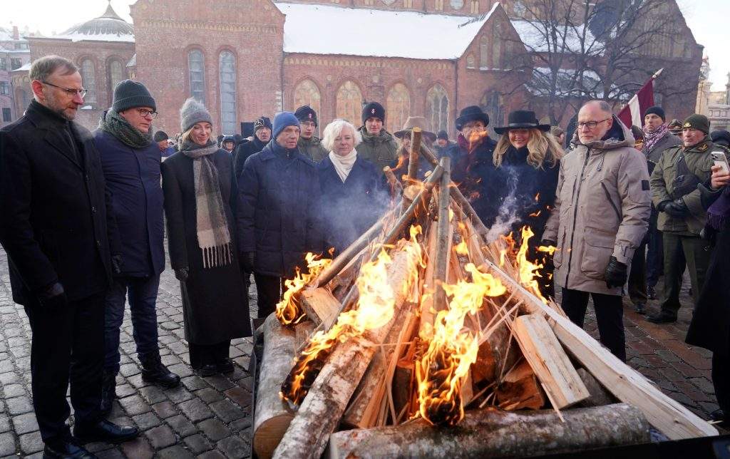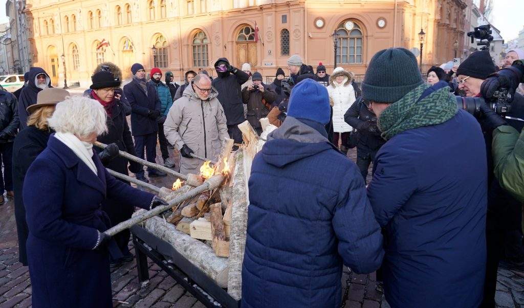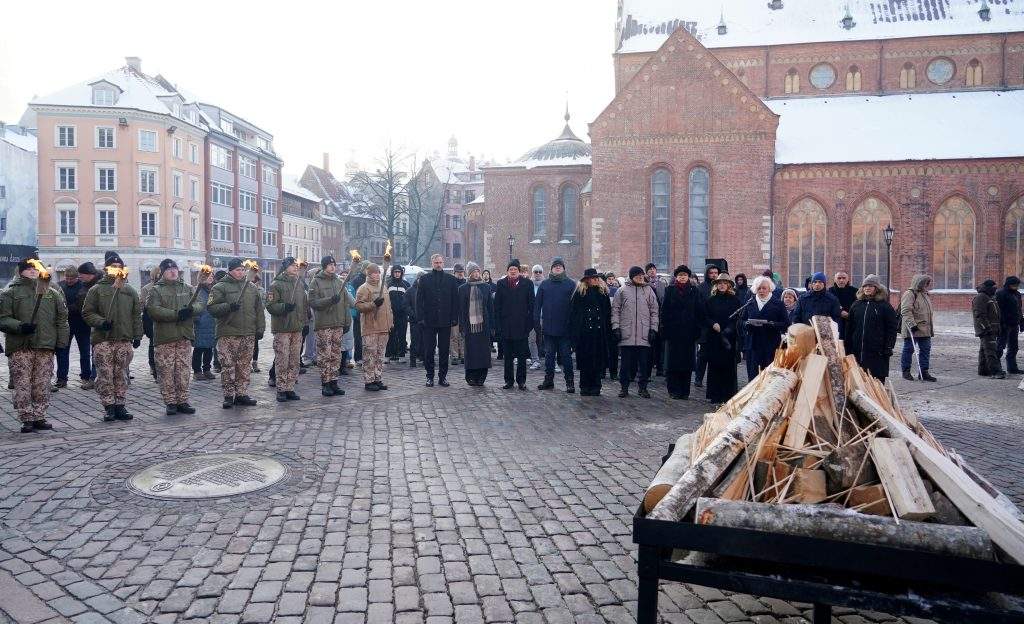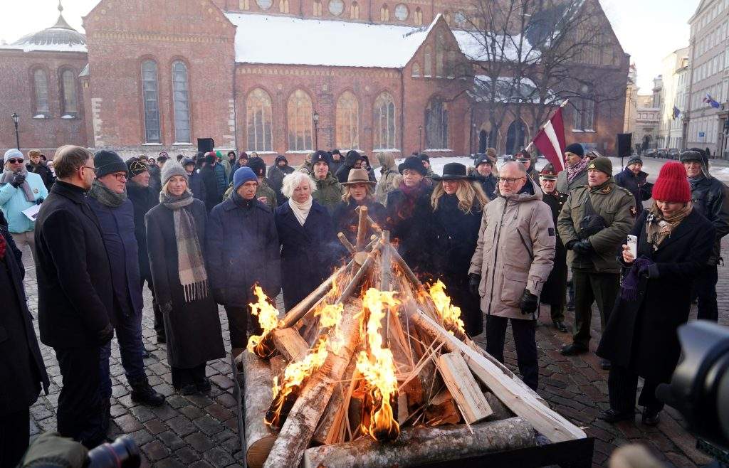 FOTO. Doma laukumā iedegts 1991.gada barikāžu atceres ugunskurs 0
