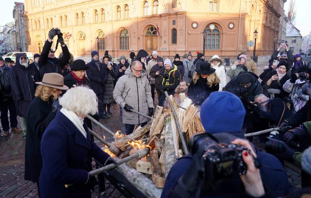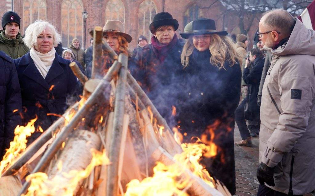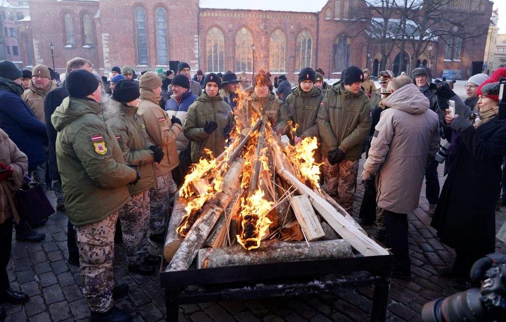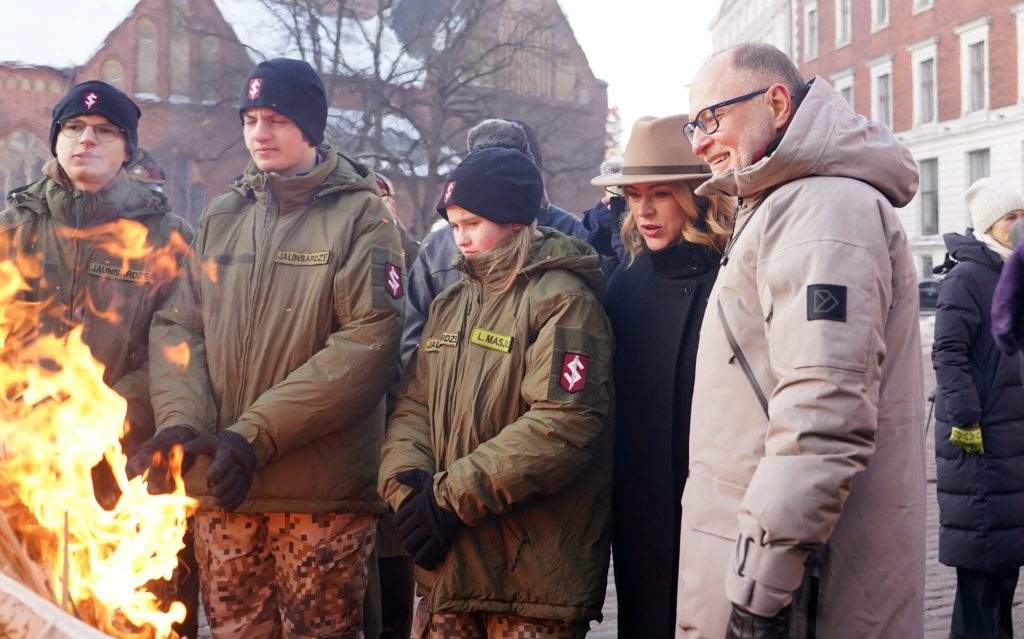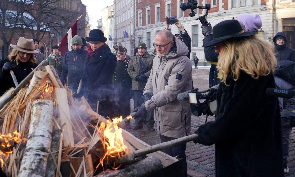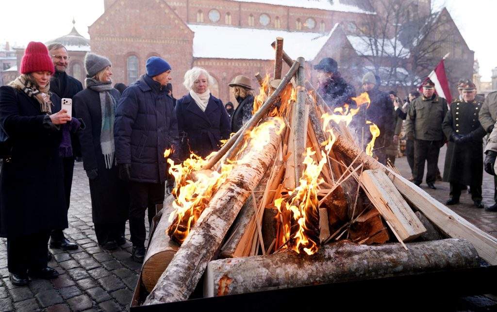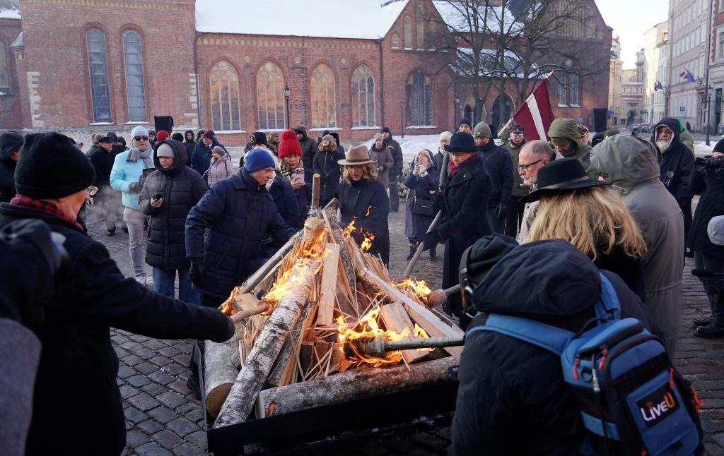 FOTO. Doma laukumā iedegts 1991.gada barikāžu atceres ugunskurs 0