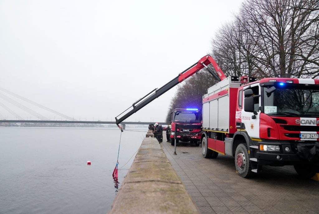 FOTO. Glābēji no Daugavas izcēluši NMPD mediķes automašīnu 7